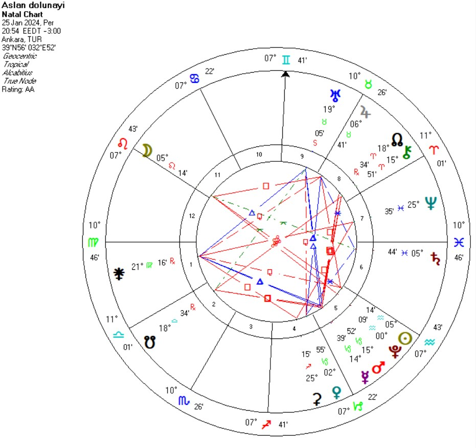Ancak Secondary Progress haritada sırasıyla Ocak Ay Pluto üçgeni, Ocak sonu ve Şubat’ı içine alan Ay Mars karesi (Bu iki açıda halkı huzursuz eden ve güvenlik kaygısı oluşturan açılardır). Nisan sonu Mayıs başları Ay Jüpiter karesi ve Ay Uranüs kavuşumu halkımızı ve sınırlarımızı olumsuz etkileyecek olayları, askeri anlamda hareketlilik ve ülkemize karşı terör etkili saldırıları tetikleyebilir. (Kısaca 0cak Haziran arası daha kritik zamanlar). Yıllık haritada da Jüpiter ve Mars karşıtlığı etkin ve ani büyük olaylarla ilintili yücelimdeki halk göstergesi Ay da Jüpiter’e eşlik ediyor.